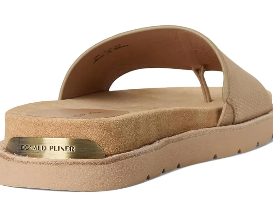 - Understated elegance meets everyday wearability in the Donald Pliner® Joella slide. This slip-on design features a single band leather upper paired with a leather-lined cushioned leather footbed, making it an effortless choice for versatile styling. The welt with constrast stitch detail, elastic walking gore, and lightweight EVA outsole enures a durable performance.