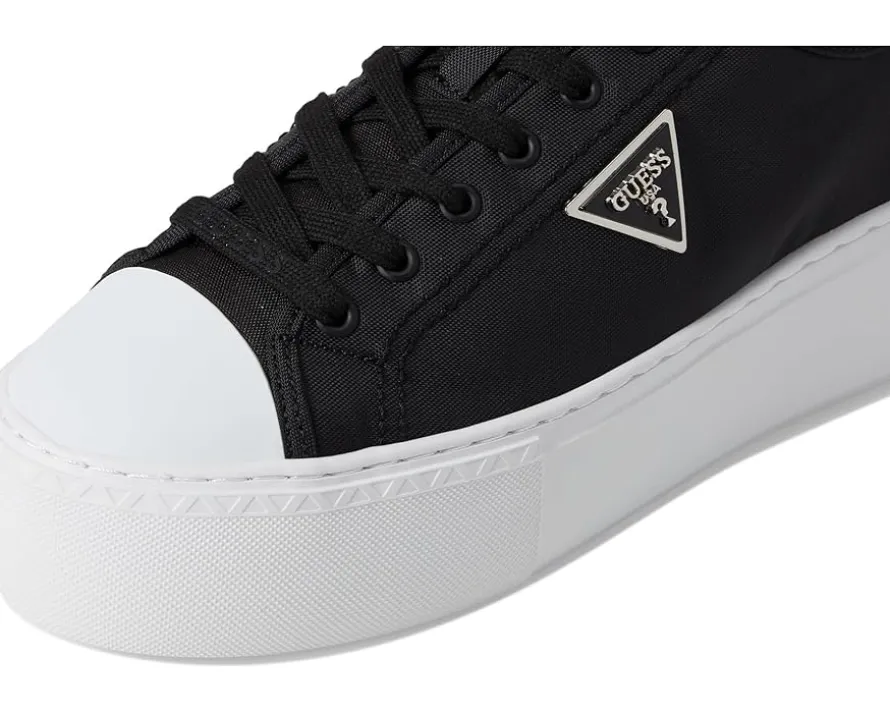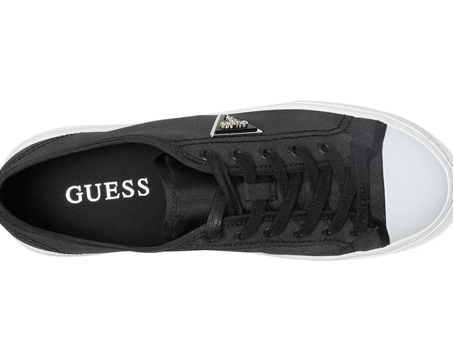 - The GUESS® Joezi shoes give a casual dress-up-or-down appeal. These platform sneakers are accented with a signature Guess triangle logo that is ready to wear with jeans or a dress. They are designed with a cushioned insole, synthetic sock lining, and synthetic rubber lining. The rubber upper features a lace-up closure for a secure fit. These lace-up sneakers are perfect to pair with different outfits and styles.