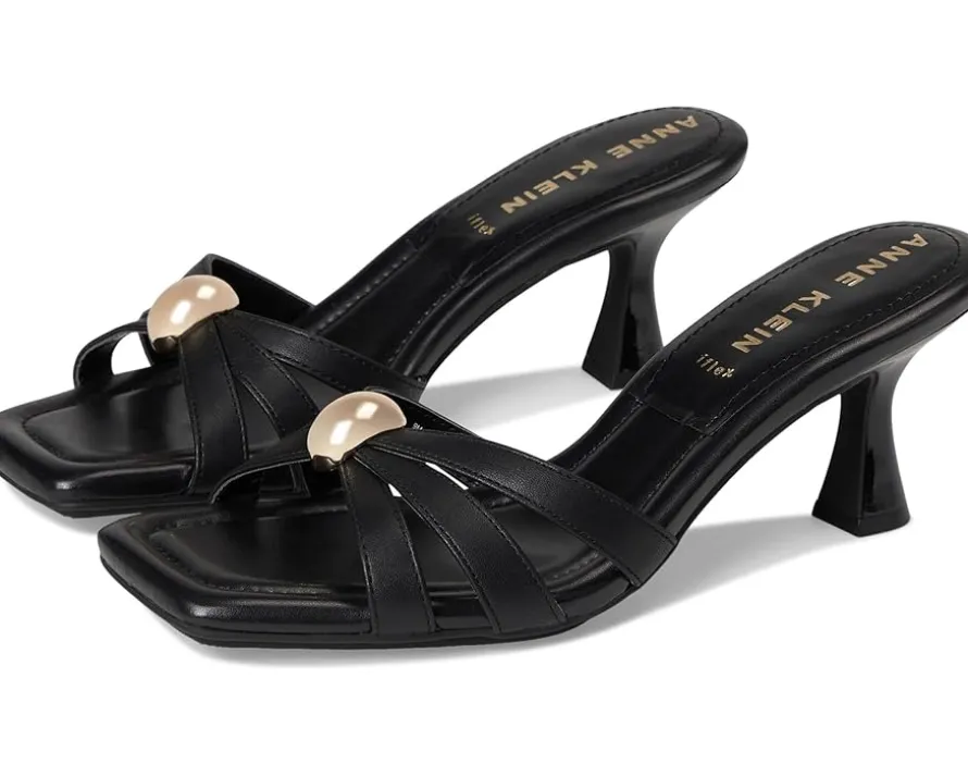- Chic and comfortable, the Anne Klein® Jonelle sandals are perfect to pair with your dresses and party outfits. These heeled sandals are designed with a polyurethane upper, insole, and lining. Their strappy design with pearl detail in the center adds to their style. Get ready for any occasion with these slip-on heels.