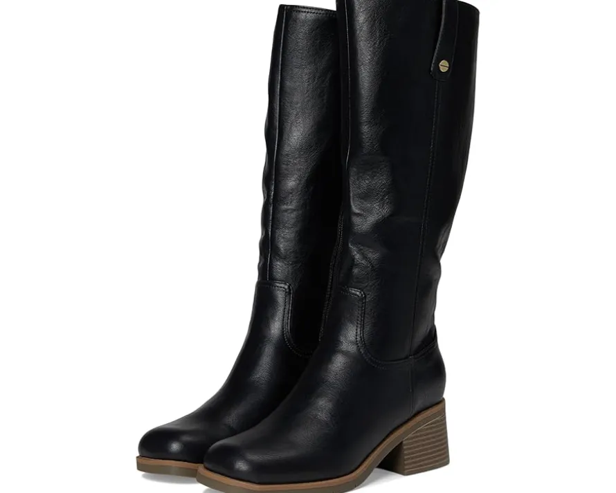 - The Dr. Scholl’s® Joplin Riding Tall Boots feature a low-chemical faux leather upper and a sleek silhouette accented by western-inspired stitching, rivet details, and a square toe. The inside zipper ensures effortless on/off wear, while the stacked block heel and lightweight blow thermoplastic rubber outsole offer stability with every step. Crafted with linings and topcloth partially made from recycled plastic bottles, plus a recycled toe box and heel counter, the Joplin also features a cushioned insole made with 15% plant-based BLOOM® foam. Designed to promote freshness and long-lasting comfort, the insole technology supports your stride while minimizing odor and moisture buildup—so you can move confidently.