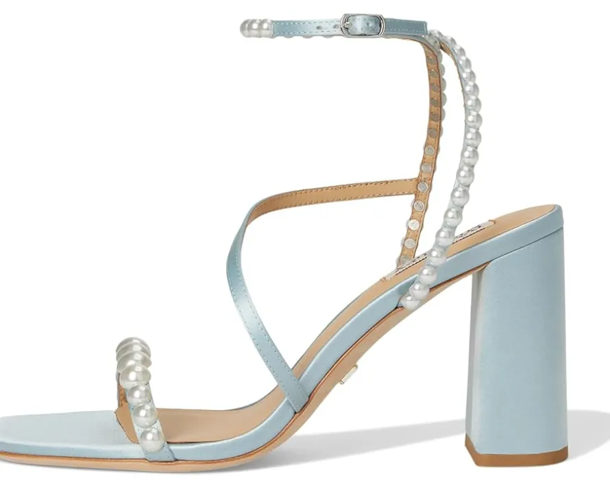 - The Badgley Mischka® Jordyn heels are block-heeled sandals with pearl ornament, making them perfect for parties and events. These heeled sandals are made of foam insole and breathable leather lining for added comfort. Their silk upper features an ankle strap with an adjustable buckle closure. Add a chic look to your outfits with these heels.