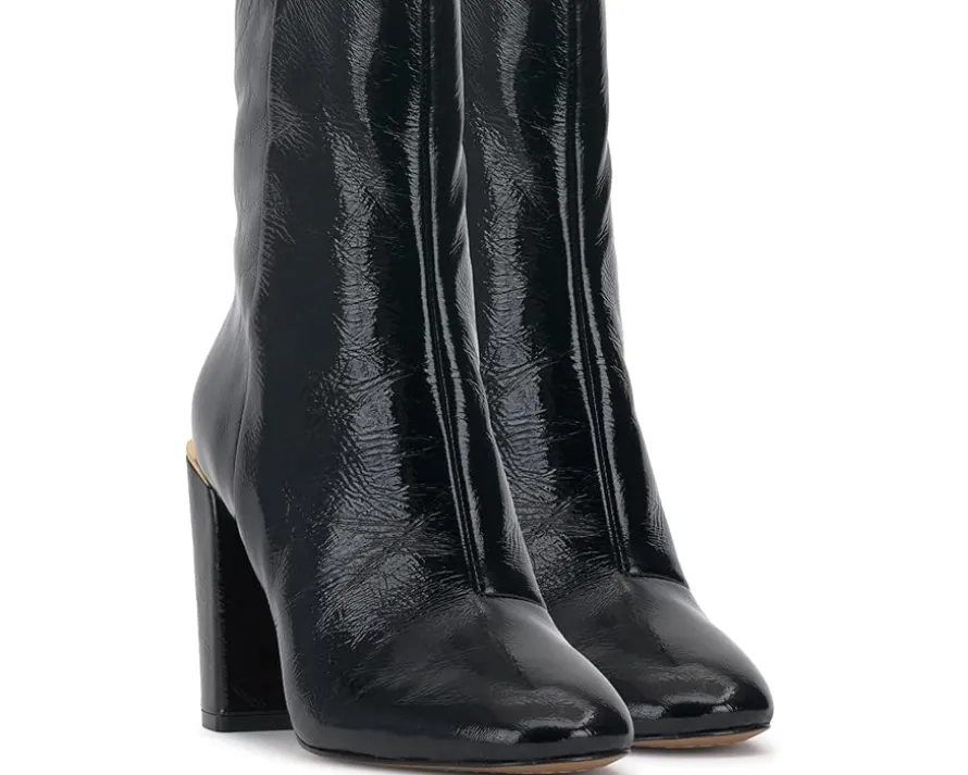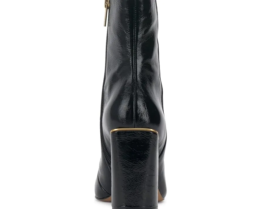 - The Jordyn dress bootie has a full inside zip and rounded toe. The covered block heel is 3.5 inches. Finished with a metal decorative rand, it is sure to stand out in your closet as well as on your feet.