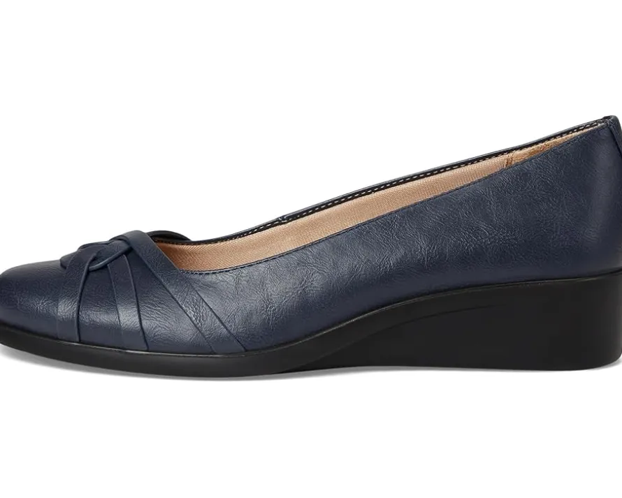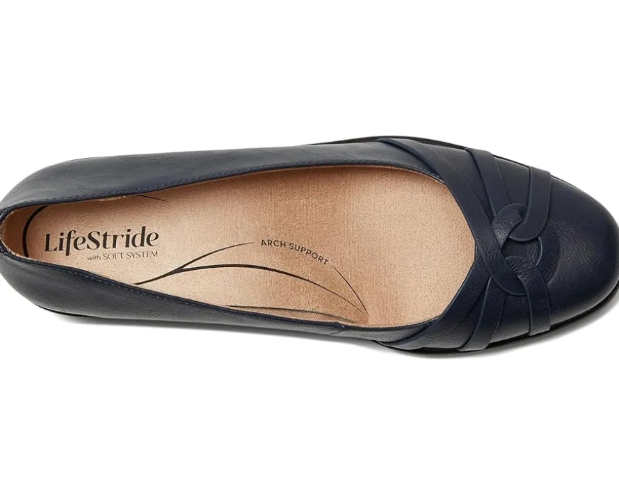 - Step into comfort and style wearing the LifeStride® Jorie Skimmers! These sleek wedge heels are crafted with a faux leather upper, lining, and insole for a polished look, while the round toe and interwoven strap detail offer a touch of sophistication. Designed with standout arch support and a contoured cushioned insole, these skimmers ensure all-day comfort, whether you’re at work or running errands. The slip-on fit and PU outsole provide flexibility and traction for stability, making them perfect for any occasion. Featuring Soft System® comfort technology and linings made from partially recycled materials, they blend style and sustainability seamlessly.