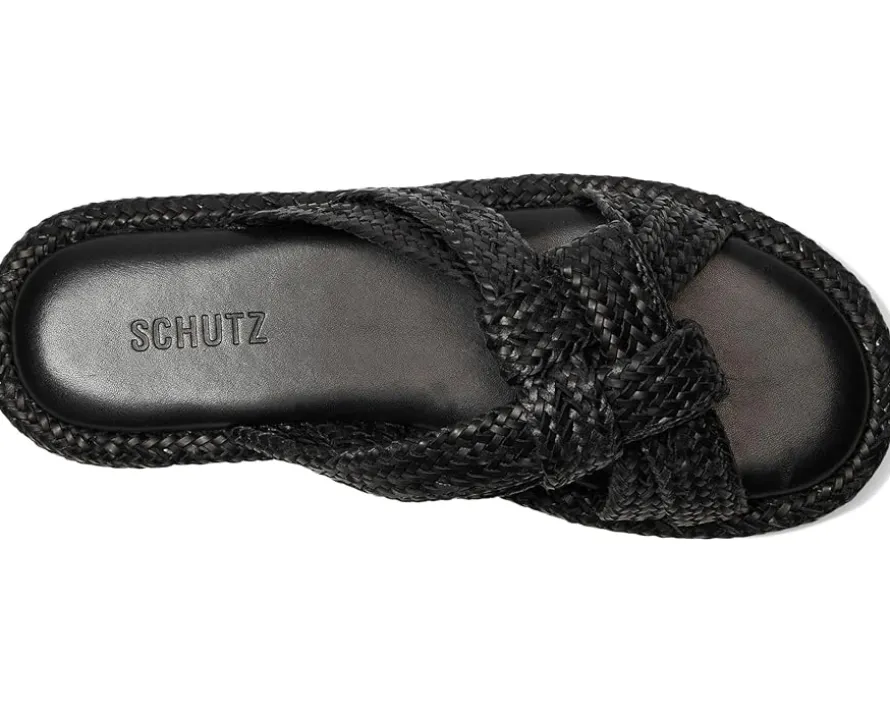 - Take every step forward with improved comfort and style wearing Schutz® Kali Flat. The slip-on style, open-toe flats for women are designed with a knotted leather upper, leather lining, and comfortable foam insole.
