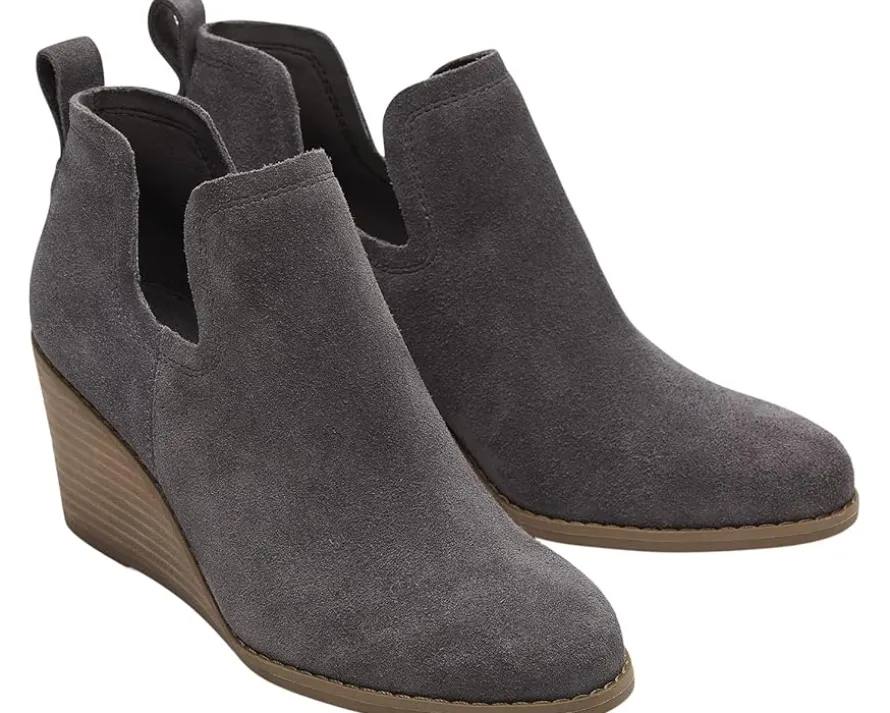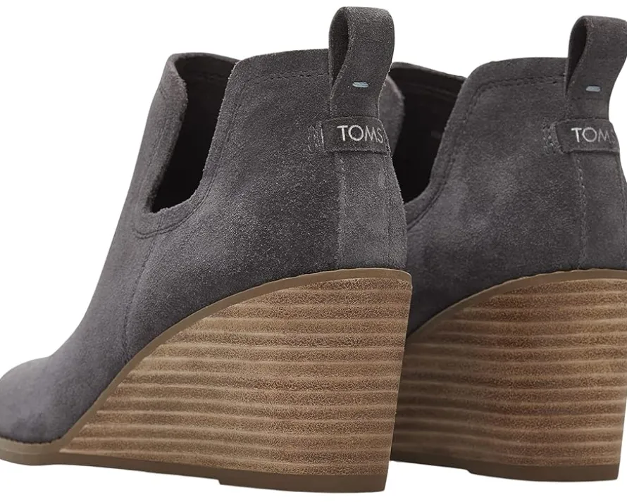- Step out in style wearing the TOMS® Kallie with a soft almond toe, featuring cutout details around the ankle, a cushioned OrthoLite® Eco™ footbed that keeps feet supported for comfy all day wear, and a sturdy wedge.