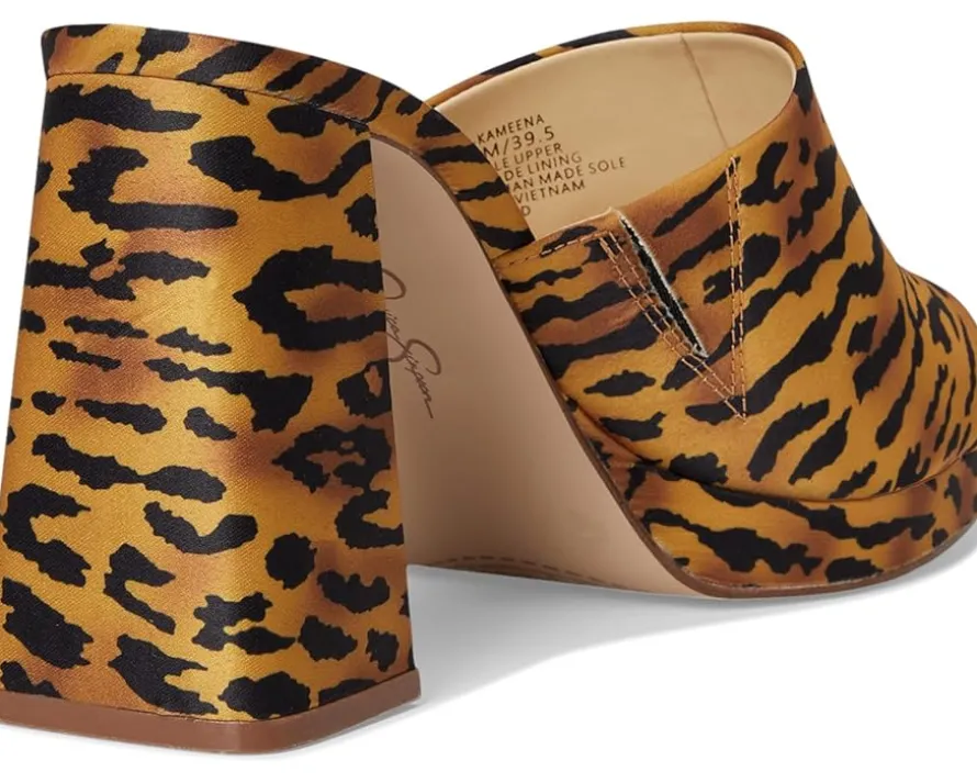 - A sculpted block heel elevates the classic look of Jessica Simpson™ Kameena Mule Platform Sandals. This slip-on footwear is designed with a faux leather upper and peep toe silhouette.