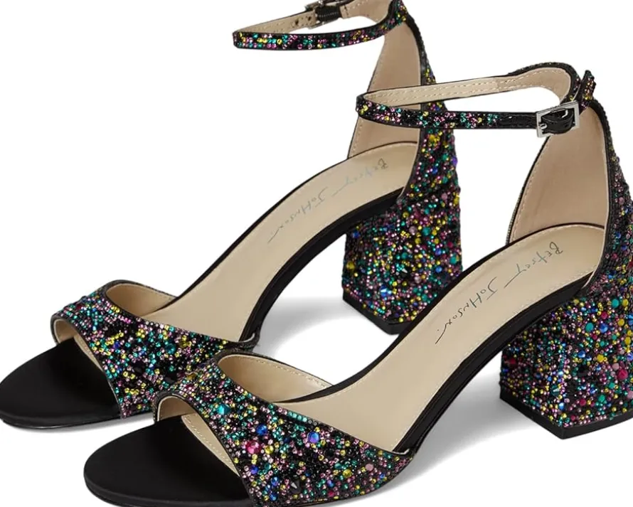 - The Blue™ by Betsey Johnson Kami is a flirty open-toed sandal glistening allover with embellishments. With an adjustable buckle at the ankle strap, it has a sturdy block heel that offers heightening comfort.