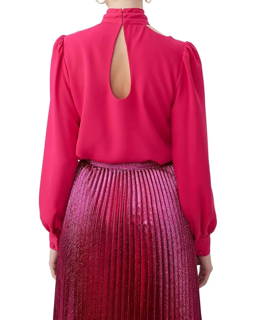 - The Trina Turk™ Kanai Top comes with a criss-cross pleated high neckline with a keyhole in the back and long bishop sleeves. Made from polyester fabric that offers superior comfort and durability, this stylish top is a perfect choice for date nights, casual parties, and other occasions.