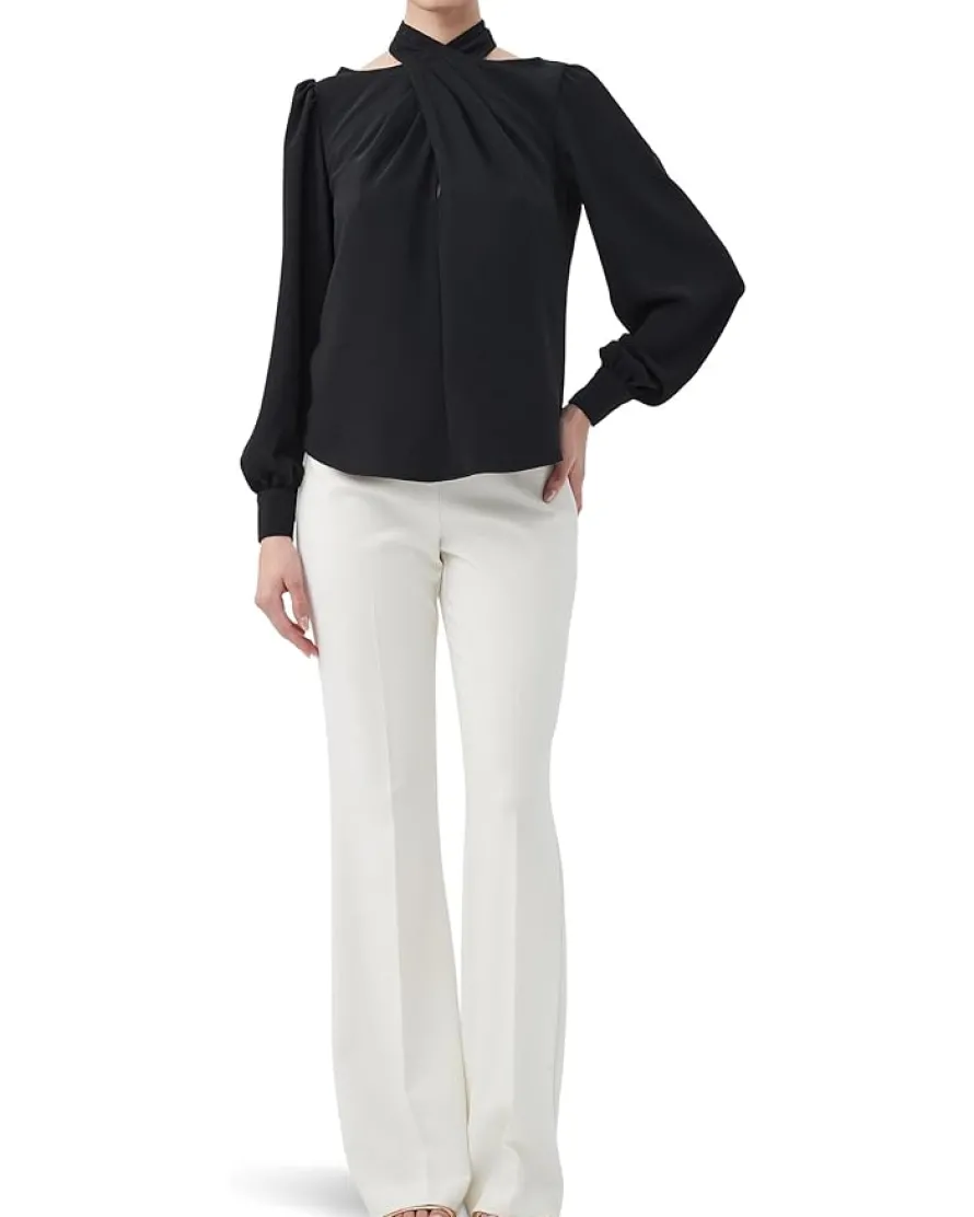 - The Trina Turk™ Kanai Top comes with a criss-cross pleated high neckline with a keyhole in the back and long bishop sleeves. Made from polyester fabric that offers superior comfort and durability, this stylish top is a perfect choice for date nights, casual parties, and other occasions.