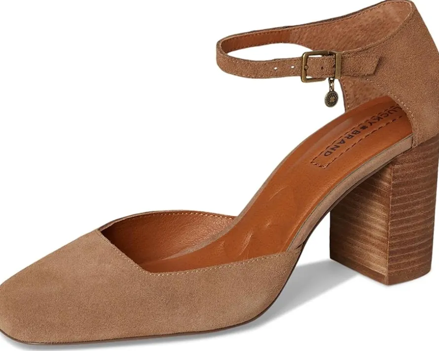 - Walk confidently adorning Lucky Brand® Kanira. Designed with a luxe suede upper and finished with a sleek buckle closure at the ankle, this statement shoe blends timeless charm with modern edge. The closed toe silhouette makes it ideal for office hours, while the sturdy block heel takes you from daytime meetings to evening cocktails in total comfort. Faux leather lining and insole offer all-day ease, and a synthetic rubber outsole provides dependable traction.