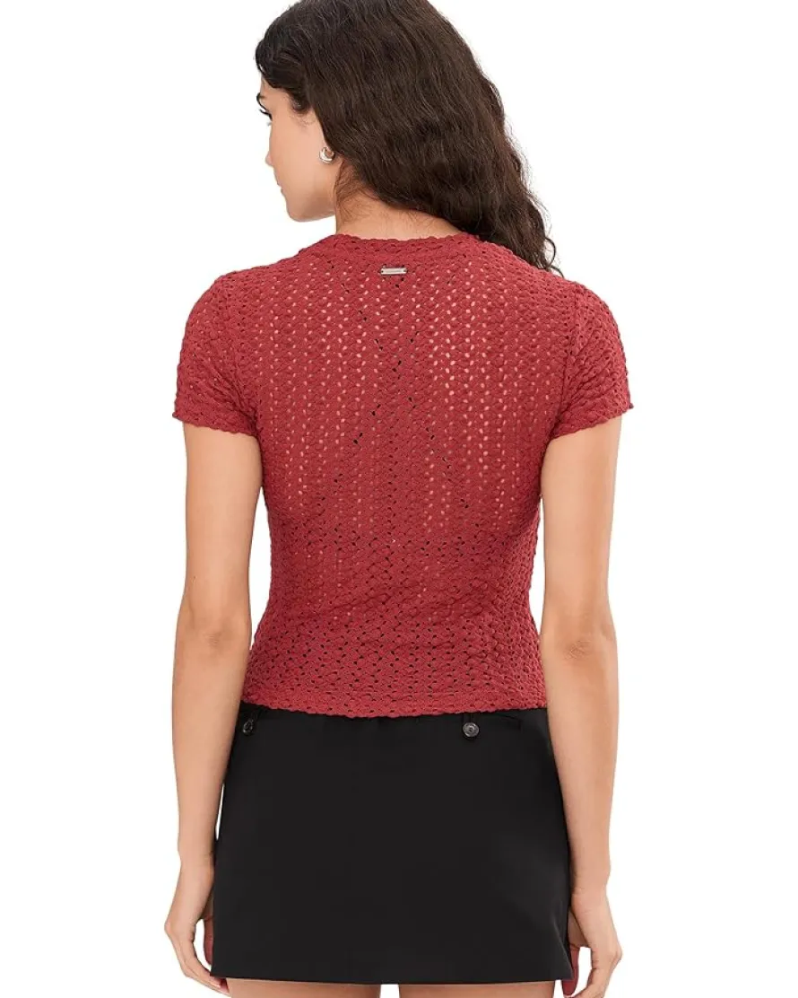- The AllSaints™ Karma Stevie Tee is the perfect addition to your wardrobe. Made with a crochet-style fabrication, this tee features a crew neckline, short sleeves, and a narrow neckline binding. Its straight hemline adds a touch of sophistication to any outfit.