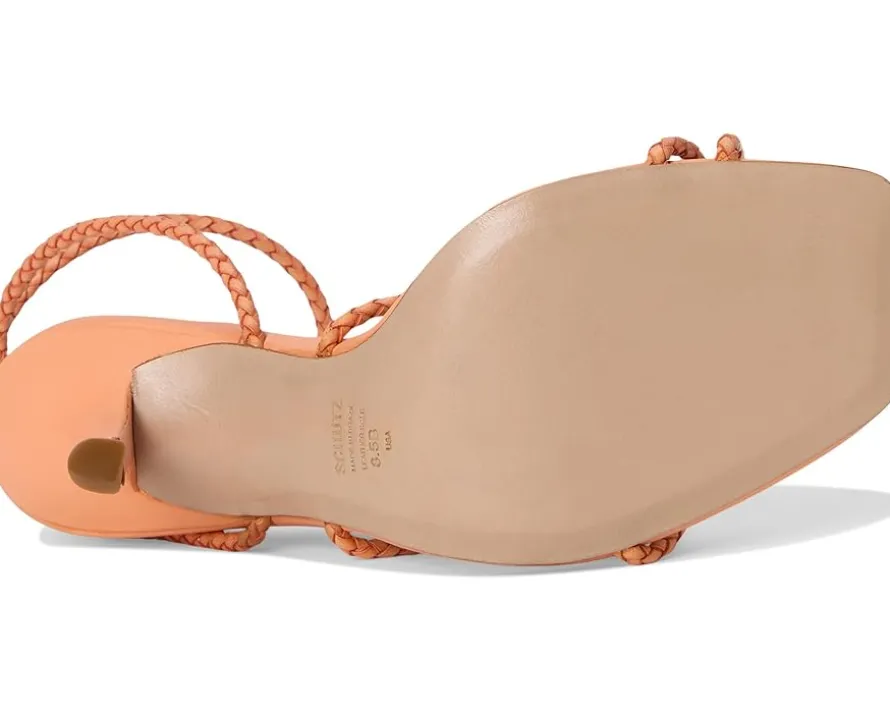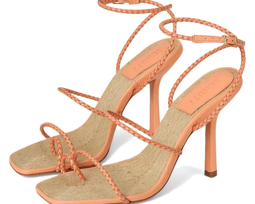 - Complement your dresses with the gorgeous Schutz® Kaya Straw heels and accentuate a stunning style statement. The open squared-toe heels are designed with a braided leather upper, leather lining, and a comfortable leather insole. The stiletto heel gives the pair a striking detail, and the ankle strap & buckle closure allow a custom fit.