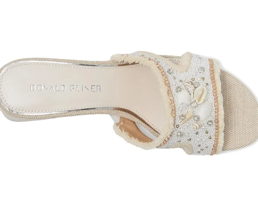 - The Donald Pliner® Kaylan sandals offer a breezy aesthetic with their intricate beaded detailing. These heeled sandals are made of a rubber upper and leather lining. Their slip-on design and memory foam insole ensures effortless comfort, making them a perfect go-to for warm days.
