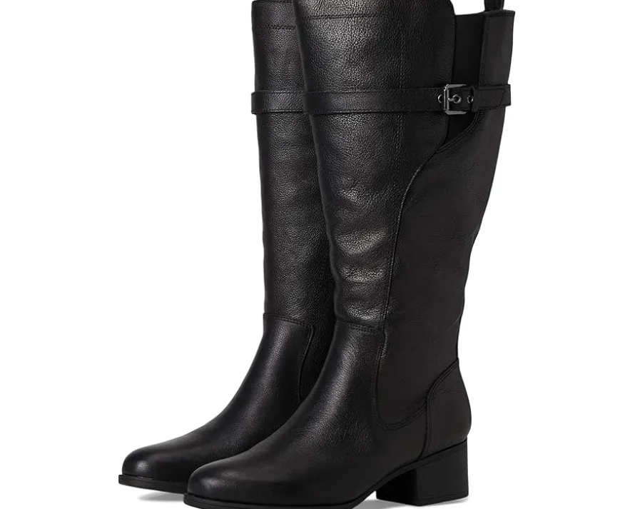 - The Naturalizer® Kenna Extra Wide Calf Knee High Boots feature a wraparound strap with buckle detail and a round toe shape for timeless appeal. A zippered side closure and back pull tab ensure easy wear, while elastic goring at the calf provides added flexibility. Enhanced with Contour+ Comfort technology, they deliver a premium fit and cushioned support.