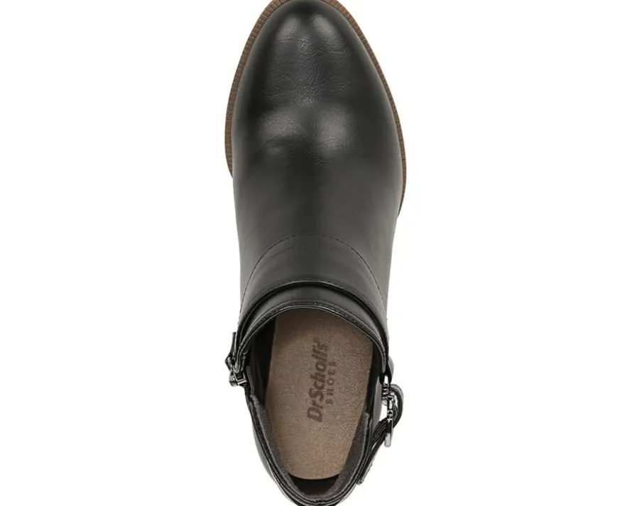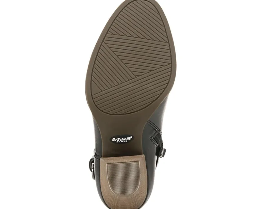 - Stride with confidence wearing the Dr. Scholl’s® Kickstart perfect for casual and party wear, that features stacked block heel and buckle detailing.