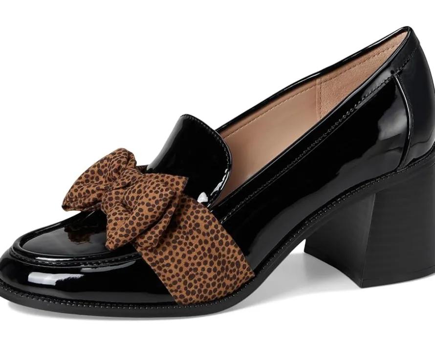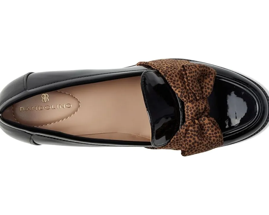 - Designed in a loafer silhouette with sculpted high-block heel, the Bandolino® Korrar ensures a standout appeal. The slip-on footwear features polyurethane upper with bow accentuation and almond toe silhouette.
