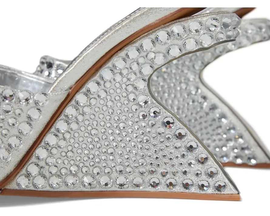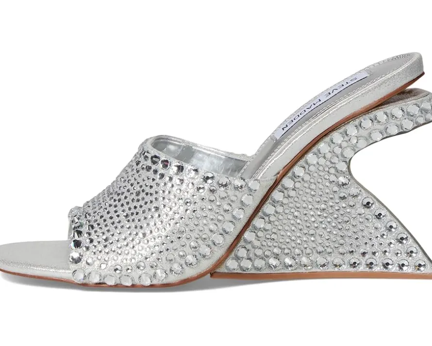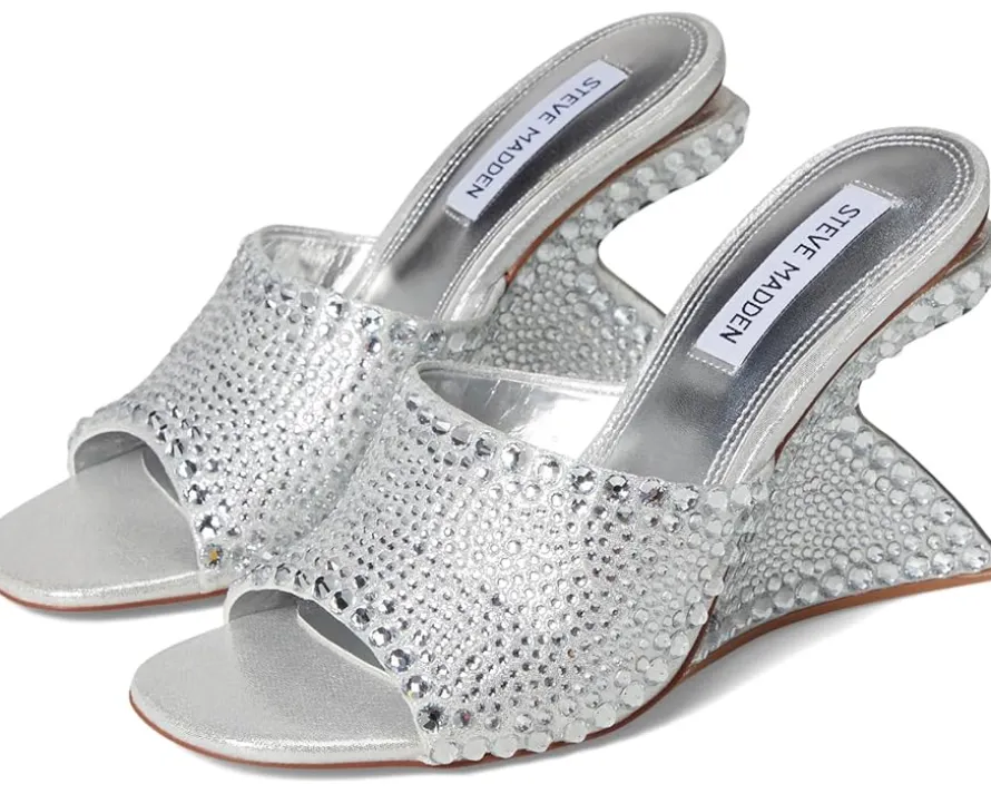 - The Steve Madden® Krash-R wedges are a stunning fusion of modern and traditional elements. The foil fabric adds a shimmering metallic sheen, while the rhinestone embellishments elevate the design to a whole new level. The comfortable wedge heel provides a boost of height without sacrificing stability, making these sandals perfect for both casual and formal occasions. The combination of foil and rhinestones creates a truly glamorous and eye-catching footwear piece.