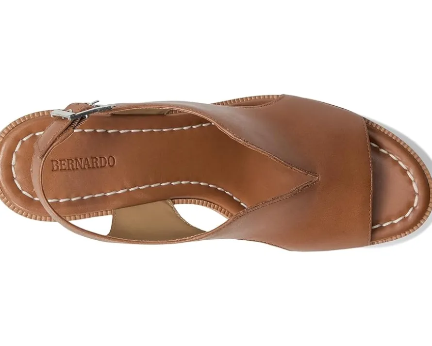 - Raise your standards. The Bernardo® Kuarta slingback wedge sandal reconsiders the essentials by uniting a signature, sculptural Bernardo upper with an elevated wedge heel that delivers both drama and comfort. Crafted from leather upper, lining, and cork insole, this pair of sandals features open round toe, buckle closure, and brand detailing on the footbed.