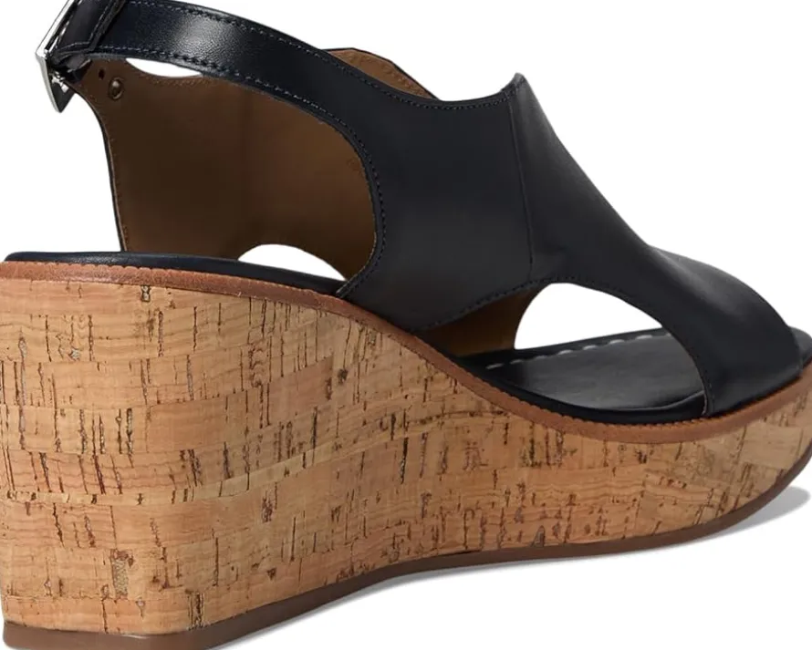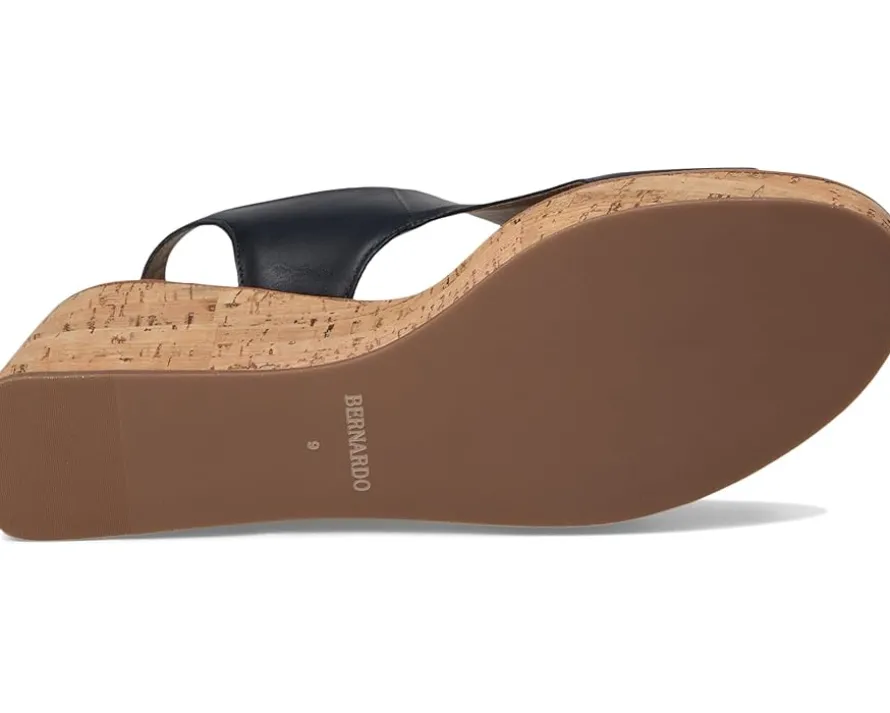 - Raise your standards. The Bernardo® Kuarta slingback wedge sandal reconsiders the essentials by uniting a signature, sculptural Bernardo upper with an elevated wedge heel that delivers both drama and comfort. Crafted from leather upper, lining, and cork insole, this pair of sandals features open round toe, buckle closure, and brand detailing on the footbed.