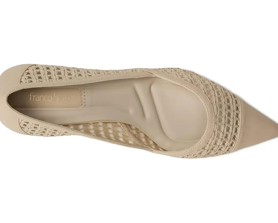 - Keep fashion at your feet wearing the Franco Sarto® L-Darcy. Crafted from leather upper sourced from Leather Working Group, faux leather lining, and synthetic insole, this pair of sandals features pointed toe, slip-on style, kitten heel, and brand detailing on the footbed.
