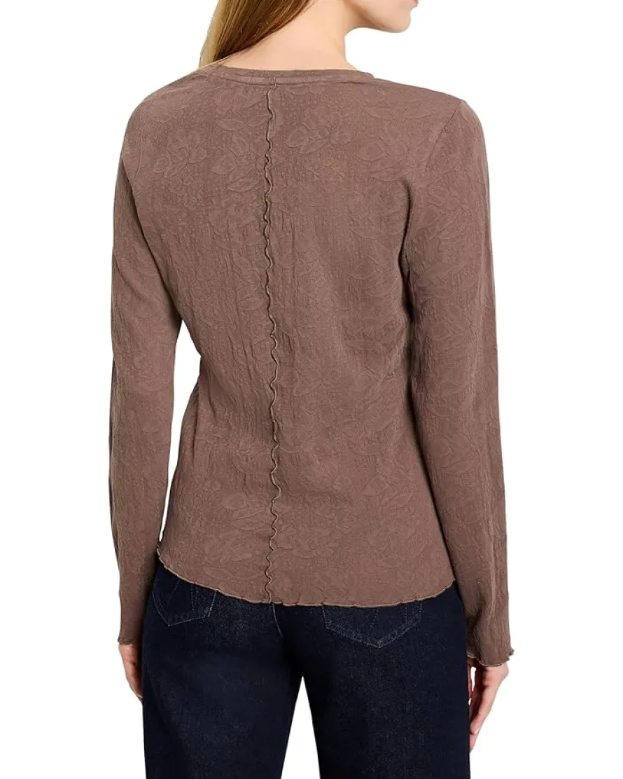 - The Lace Knit Tee: now available in a V-neck. As with the crew neck version, it’s the details that make the difference in this top that combines the classic ease of a long-sleeved tee with the elegant detailing of lace. Lettuce detailing along the edge of the stretch lace fabric adds feminine texture to the iconic silhouette. Pull-on with a classic V-neck, perfect as a capable base layer or the perfect partner to your favorite pair of jeans.