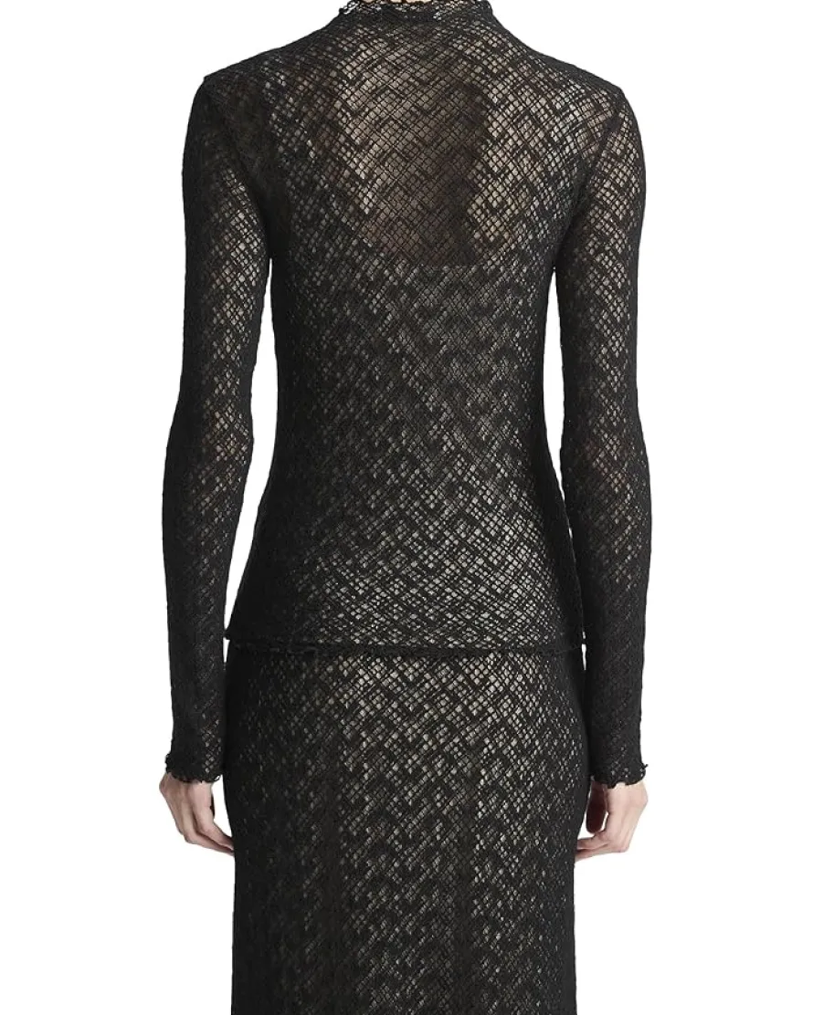 - Slip into ethereal elegance wearing the Vince® Lace Long Sleeve Mock Neck. This fitted silhouette features a soft, intricately laced design that whispers romance with every detail. The mock neck and long sleeves add a graceful, vintage-inspired touch, while the sheer outer layer teases just the right amount of skin. For effortless versatility, it comes with a removable opaque tank lining beneath, giving you the power to play it subtly or spice it up. A pull-on style for a seamless fit, this top is your ticket to instant sophistication, whether layered under a blazer for power moves or worn solo for date-night drama.