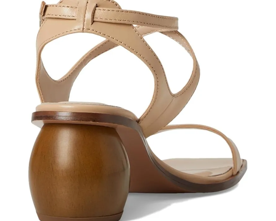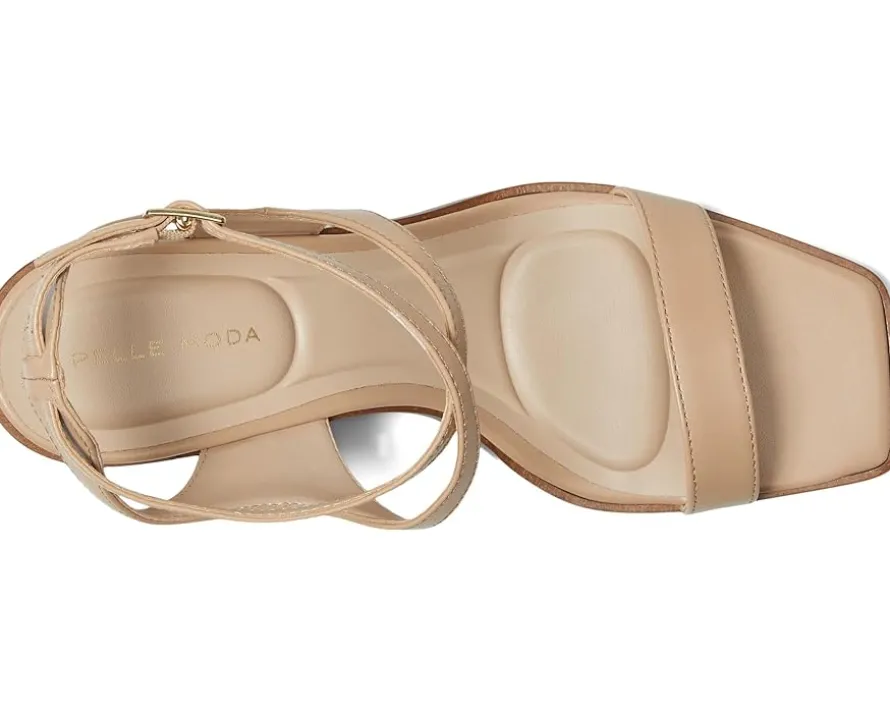 - The Pelle Moda® Laika Sandals are two-piece sandals with an ankle strap with adjustable buckle closure, and circular heels wrapped in wood for a fun look. These heeled sandals are made of a leather upper, padded faux leather footbed, and faux leather lining. These slip-on sandals are perfect to style up your looks and outfits.