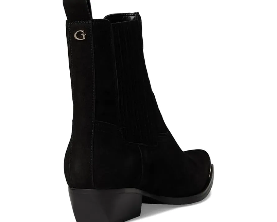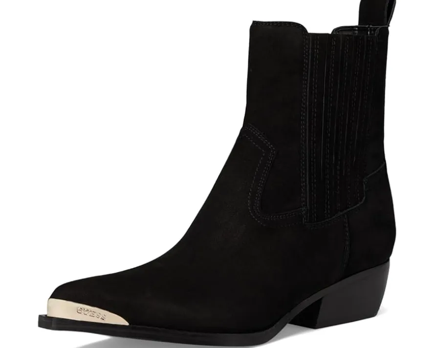 - Add a touch of western to your wardrobe wearing the GUESS® Lanna3 ankle boots. This footwear features a pull tab on the back, accented with a metal toe rand adding an extra touch to this easy to wear style.