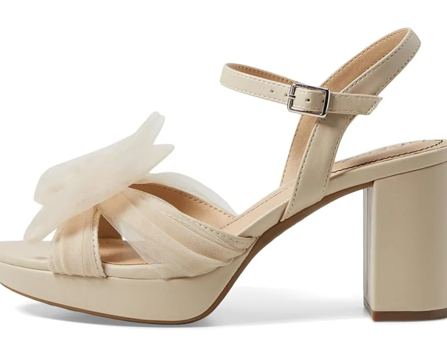 - Fabric and synthetic upper with a delicate tulle bow embellishment.