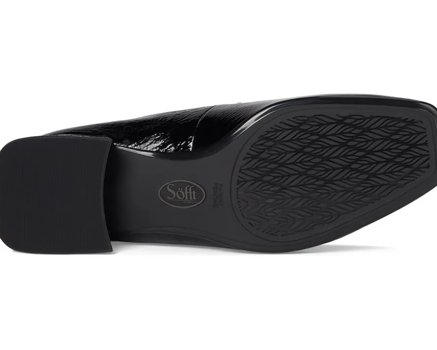 - Timeless elegance, effortless comfort. Discover Sofft® Laura. Featuring a sophisticated square-toe Mary Jane silhouette, this standout shoe combines a luxe velvet upper with crinkle patent leather for an eye-catching look. The leather upper and faux suede lining ensure a plush feel, while the microfiber sock with memory foam cushion pampers your feet all day. Buckle adjustability offers a perfect fit, and the flexible EVA insole and rubber outsole provide unparalleled support and durability.