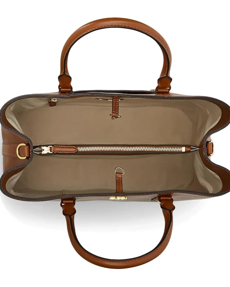 - Enjoy a naturally smooth finish getting LAUREN Ralph Lauren® Leather Large Marcy Satchel for everyday travels.