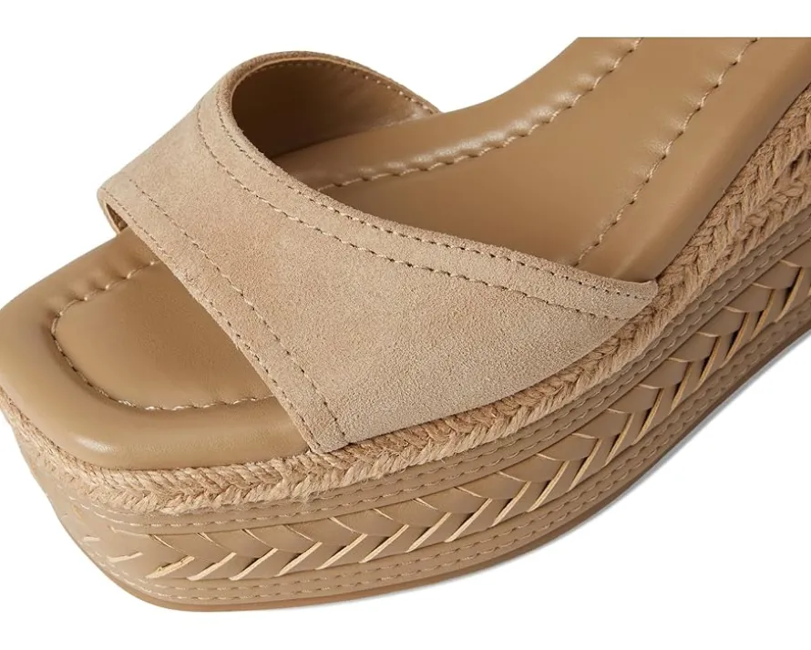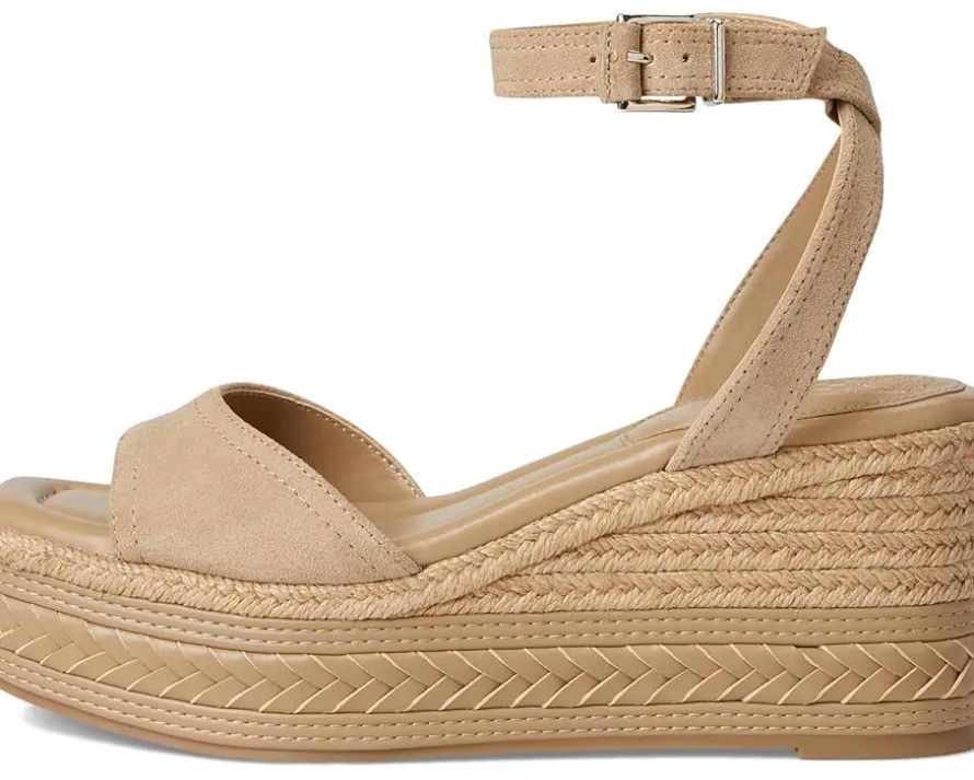 - Vince Camuto® Lilla Espadrille Wedge sandals are built for the bold. Crafted from leather upper, and mesh lining, this pair of sandals features open round toe, ankle strap, buckle closure, padded footbed, and brand detailing on the footbed.
