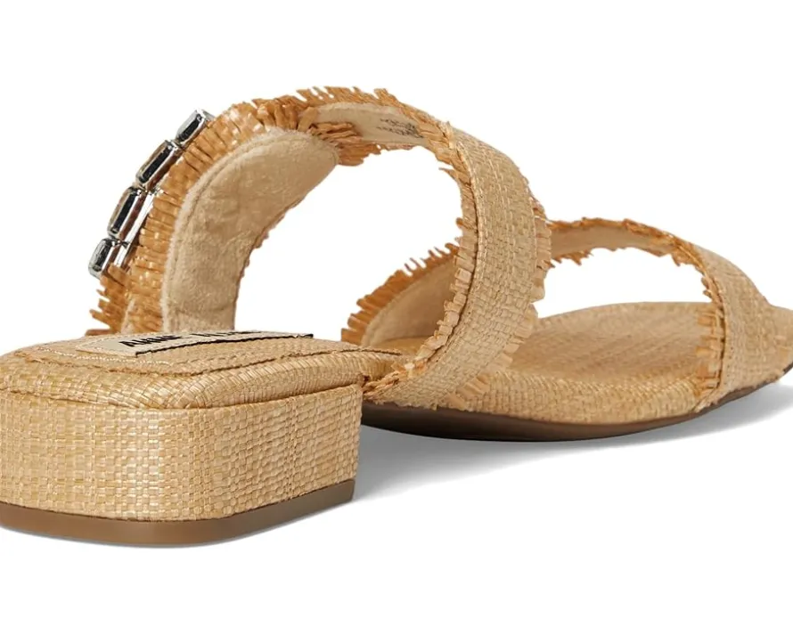 - The Anne Klein® Lillie slip-on sandal is perfect for elevating casual looks or adding a polished finish to dressier outfits. This two-banded open-toe sandal features a chic square toe shape and a dazzling crystal buckle detail that adds just the right amount of sparkle. The frayed edges lend a trendy, fashion-forward touch, while the low block heel ensures comfort without compromising on style.