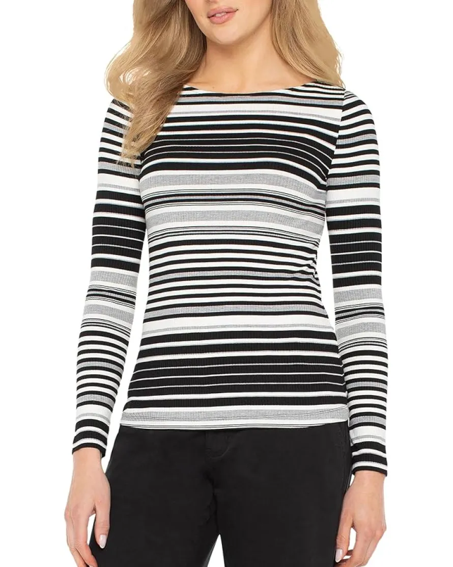- This Liverpool™ Los Angeles Long Sleeve Boat Neck Knit Top is a must have! Featuring a flattering boat neck and large rib knit, that is super comfortable and easy to wear. Perfect for layering or on its own. It comes with long sleeves, classic fit, and pull-on style.