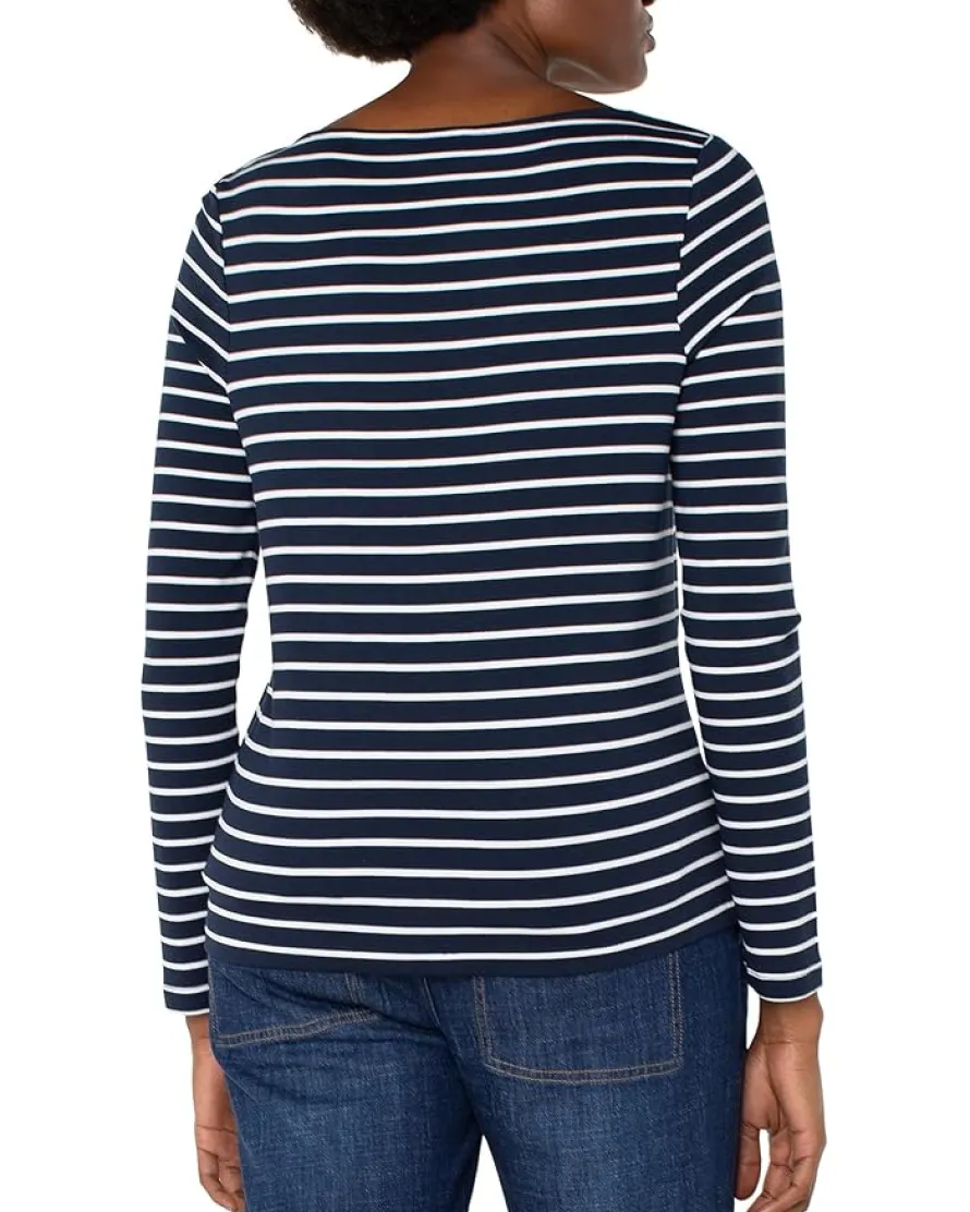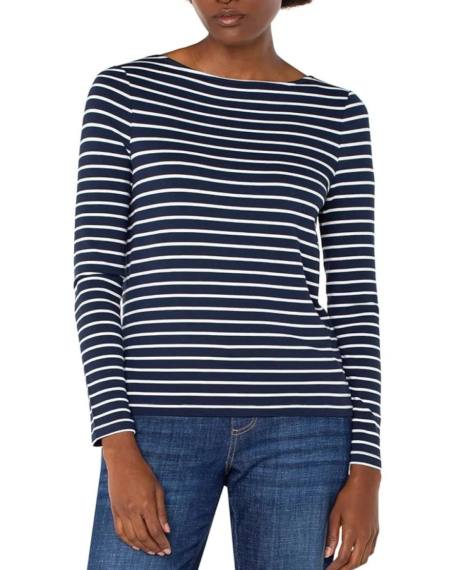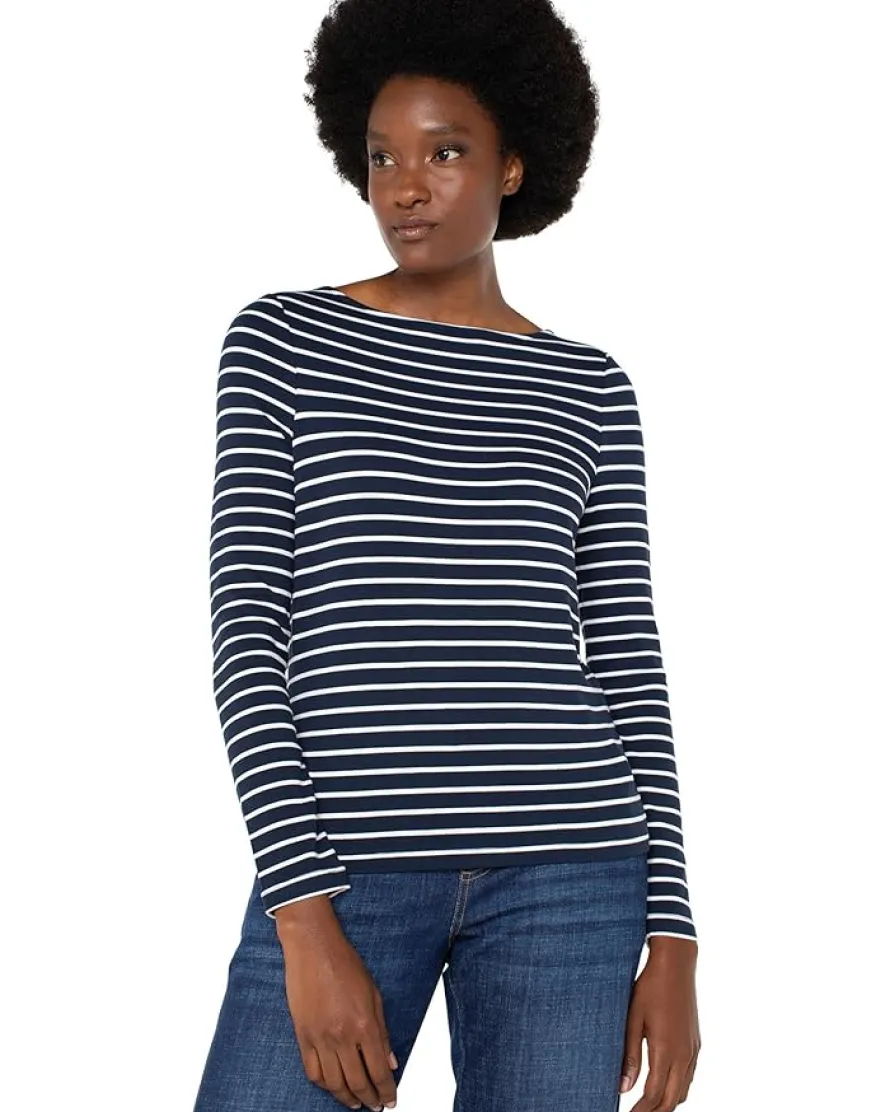 - Carry your style with the Liverpool™ Los Angeles Long Sleeve Boatneck Knit Top. Featuring classic fit, long sleeves, allover striped print, pull-on style, and straight hem.