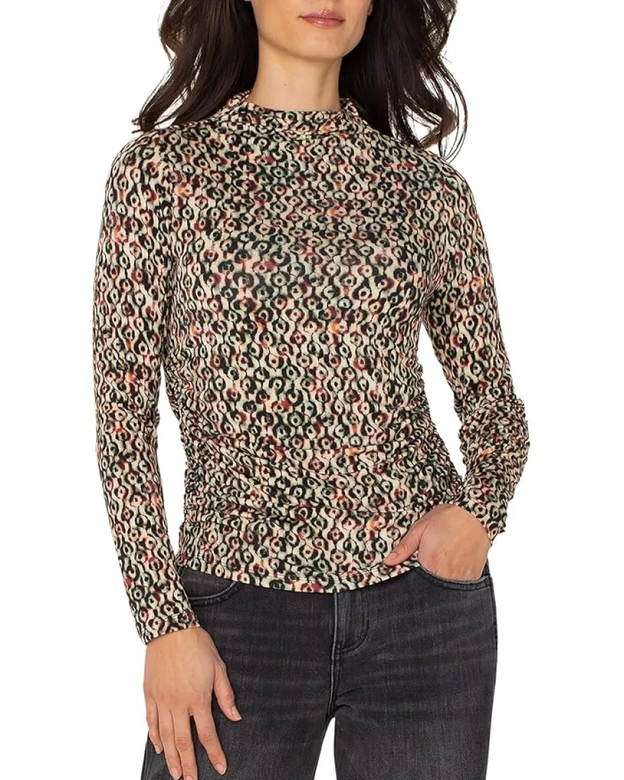 - The Liverpool™ Los Angeles Long Sleeve Pleasted Mock Neck Knit Top With Shirring provides both comfort and breathability with a beautiful mock neck. The shirred detailing and relaxed knit make it versatile for day-to-night wear without sacrificing ease of movement.