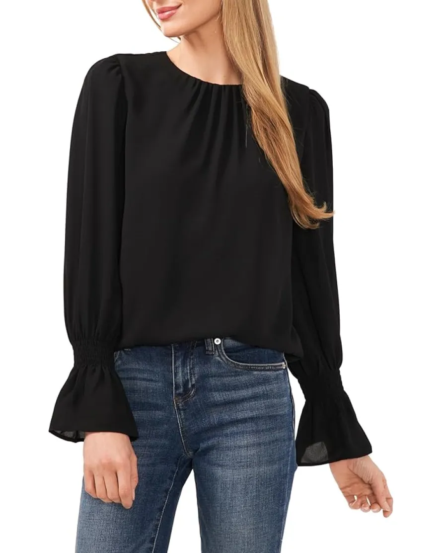 - Pair your everyday jeans with the CeCe™ Long Sleeve Smocked Cuff Ruffle Blouse for an effortless statement look. The pull-on style tee has a crew neckline, long sleeves with ruffle detailing on the elbow and elasticated cuffs, and an elasticated hem. The floral print allover elevates the look, adding a touch of femininity and grace.