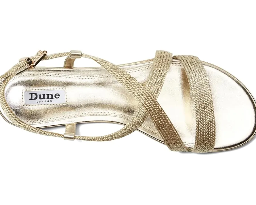 - Raise the glam quotient of your casual or party-wear style by complementing outfits with the chic Dune London® Lope Sandals. The open round-toe sandals come with a polyester upper, faux leather lining, and a thermoplastic rubber insole. These statement sandals have been designed with straps that have been accented with plait detailing that wrap around the foot for a boho-chic appeal. The adjustable buckle ensures a secure fit.