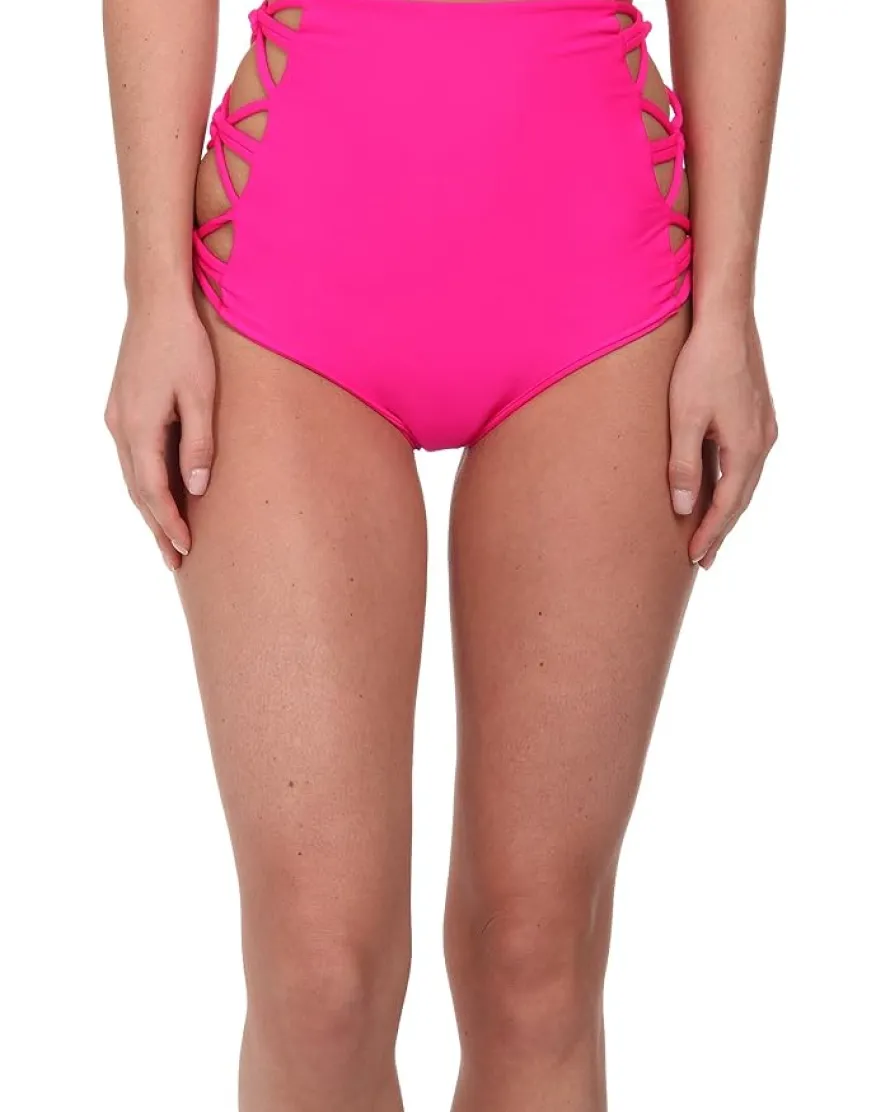 - High-rise bottom flaunts crossing string cutouts at sides for a sultry style.
