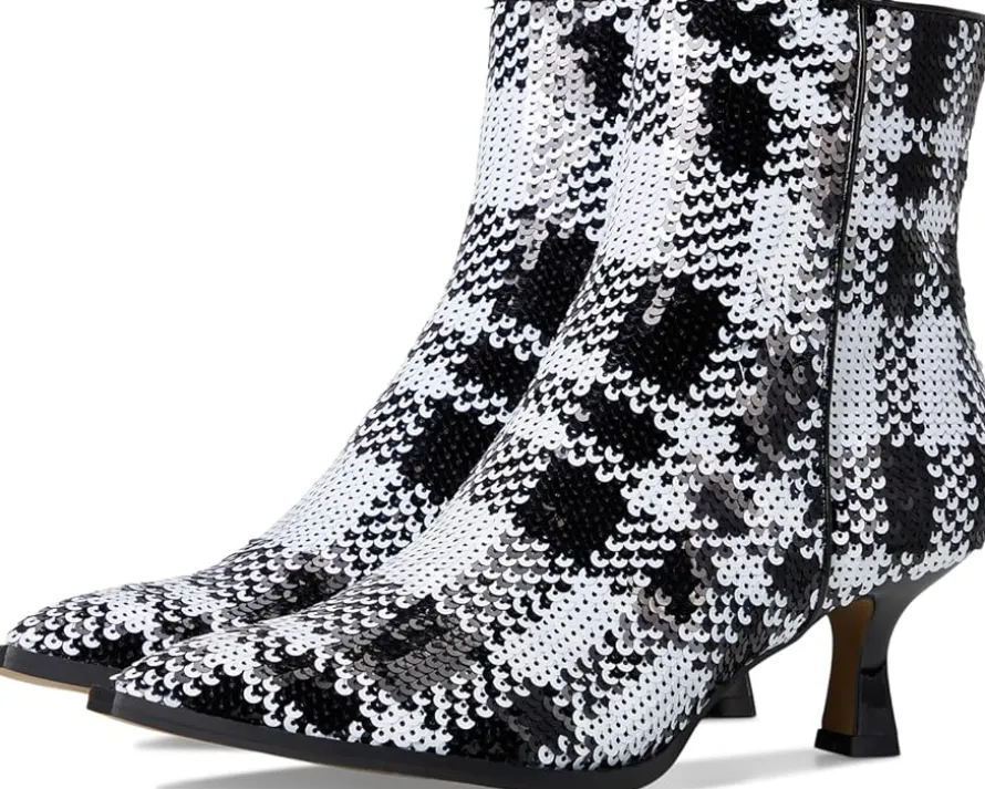 - Shake up your steps with the Blue™ by Betsey Johnson Louisa boots, designed to mold to your feet atop easy-walking kitten heels. Styled with a checkered pattern, these ankle-high boots are made of a faux leather upper, insole, and lining. Their zippered side closure offers easy on and off. Make your style statement wearing these heeled booties.