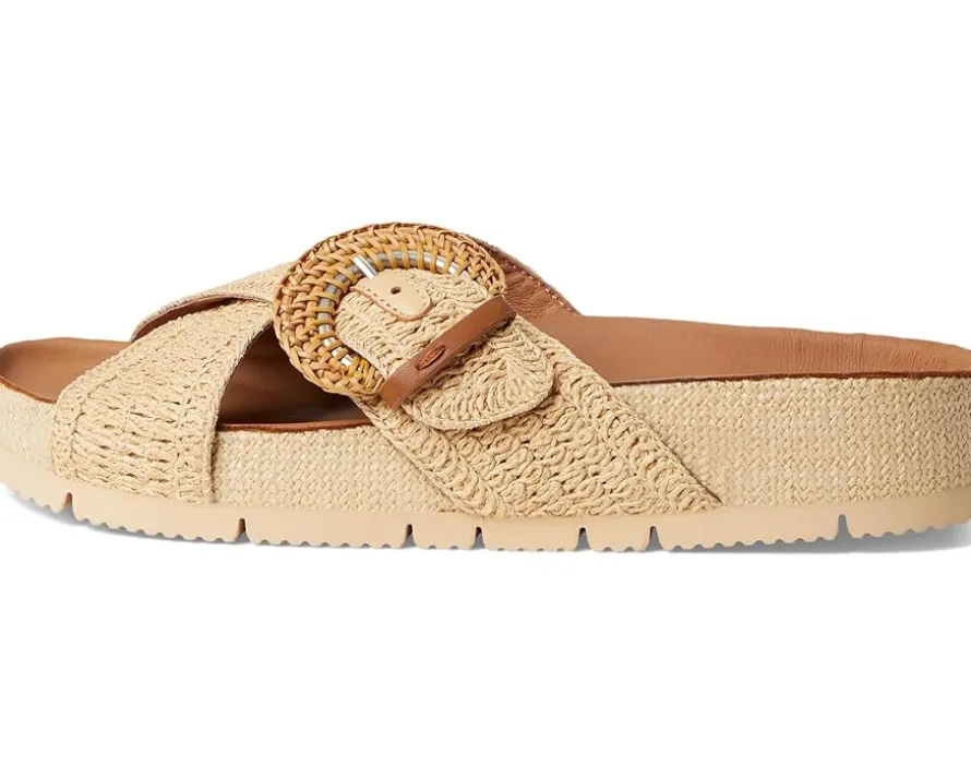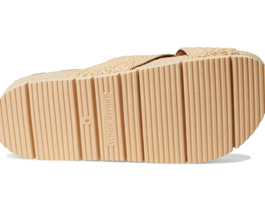 - Designed with a multi-layered comfort system and PORON® performance cushioning, the Gentle Souls® by Kenneth Cole Louisa sandals provide exceptional support and cushioning with every step. This slip-on footwear is designed with textured leather upper straps and a decorative buckle for added flair.