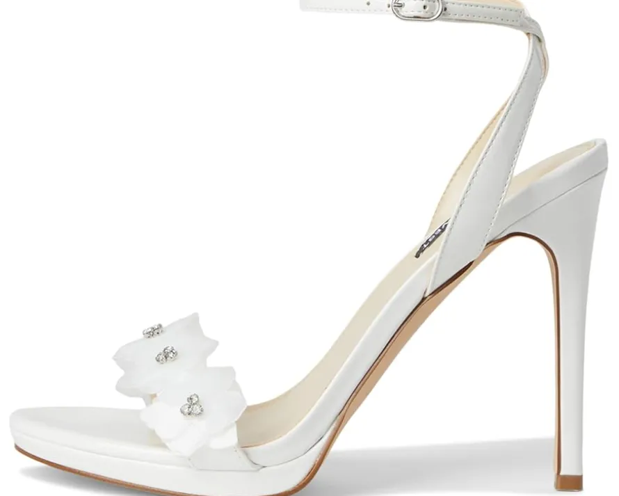 - Fall in love with the Nine West® Lovely dress sandals. It features a sky-high stiletto heel, adjustable ankle strap, open almond toe, and flower detailing on the upper. This sandal is anything but boring! Founded in 1978, Nine West empowers women to take on the world in style, from day to night.