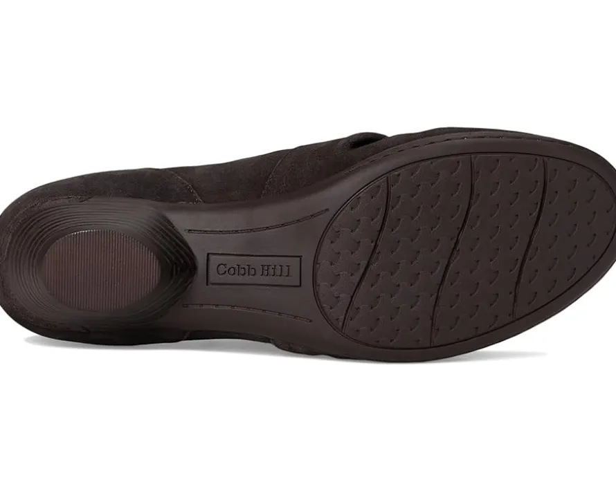 - A modern classic with a touch of tradition styling Cobb Hill® Lucy! This chic slip-on shoe features a luxurious suede upper and a round toe design for a modern look. With its pull-on lace design, you’ll enjoy easy wearability and a secure fit. The cushioned sock and PU footbed deliver exceptional arch support and all-day comfort, while the polyester lining ensures a soft touch. The synthetic rubber outsole provides superior traction and flexibility, making every step a breeze.