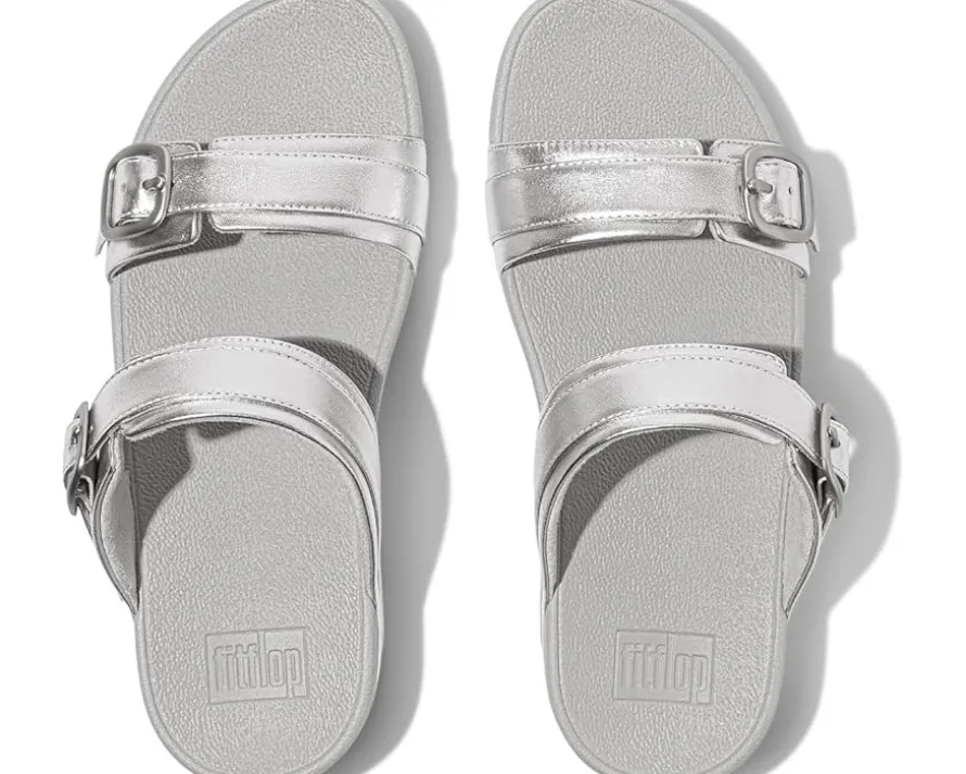 - Make a style statement donning the FitFlop™ Lulu Adjustable-Buckle Metallic-Leather Slides. Combining classic style with a customizable fit – thanks to a shiny curvy buckle on both straps. Crafted in shimmering metallic leather upper, softly padded rubber insole and ultra-comfortable microwobbleboard midsoles.