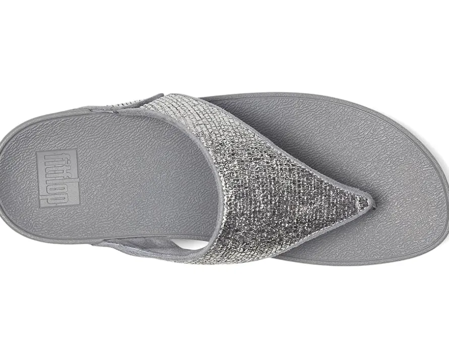 - The FitFlop™ Lulu Crinkled-shimmer Toe-post Sandals are the brand’s bestselling sandals, boasting a timeless triangular vamp, softly padded polyurethane upper, and a soft microfiber toe post. Their ultra-comfortable Microwobbleboard™ midsole offers triple-density cushioning, often likened to walking on clouds. Ergonomically engineered to help optimize your body’s alignment, natural movement, & energy, they are made of a rubber insole and polyester lining. This season, crafted in a glittering crinkled-foil fabric, these toe-post sandals are an irresistible mix of shimmer and texture. Their tonal piping adds to their style. Offering natural arch support, these sandals are grip-suited to everyday use/road tread. Simple but glitzy, these slide sandals are APMA-accepted and equally good whether you’re doing daytime glamour or headed to a party.