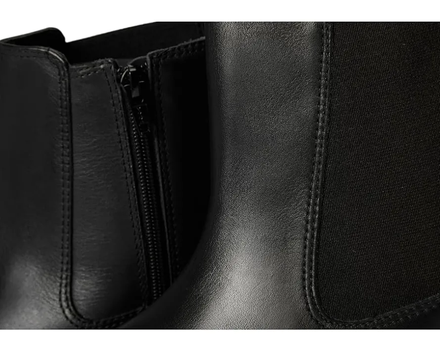 - Stacked heel and an elastic stretch side panel.