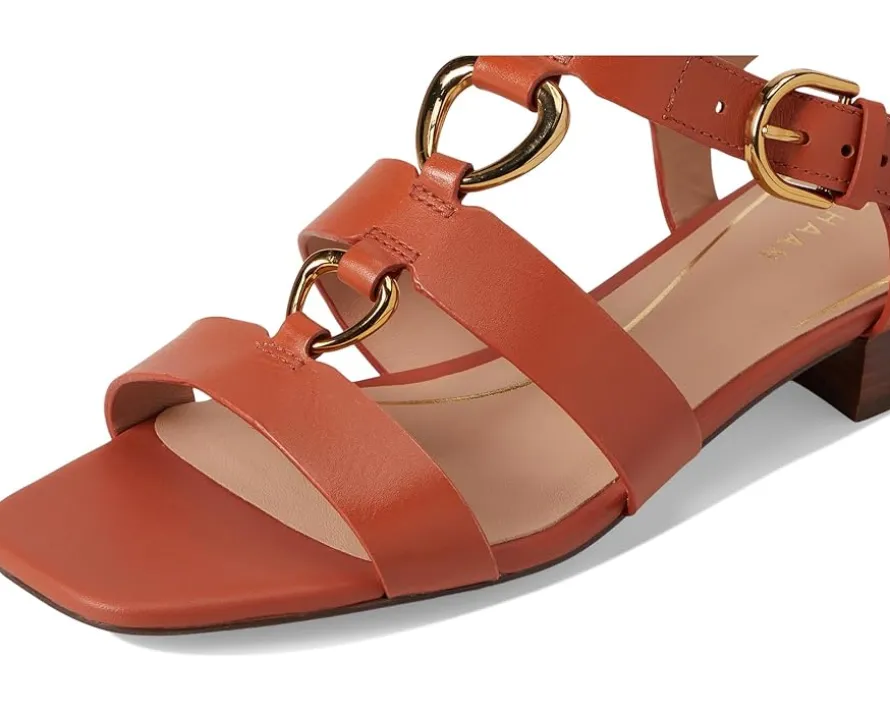 - Dressing casual or celebrating a special occasion, the Cole Haan® Lyanna Link Sandals provides apt style and comfort for both. The open squared-toe sandals come in a strappy design with a leather upper, gold-tone metal accents, and a buckle closure for adjustability. The solid block heel elevates the height for added visual aestehtic.