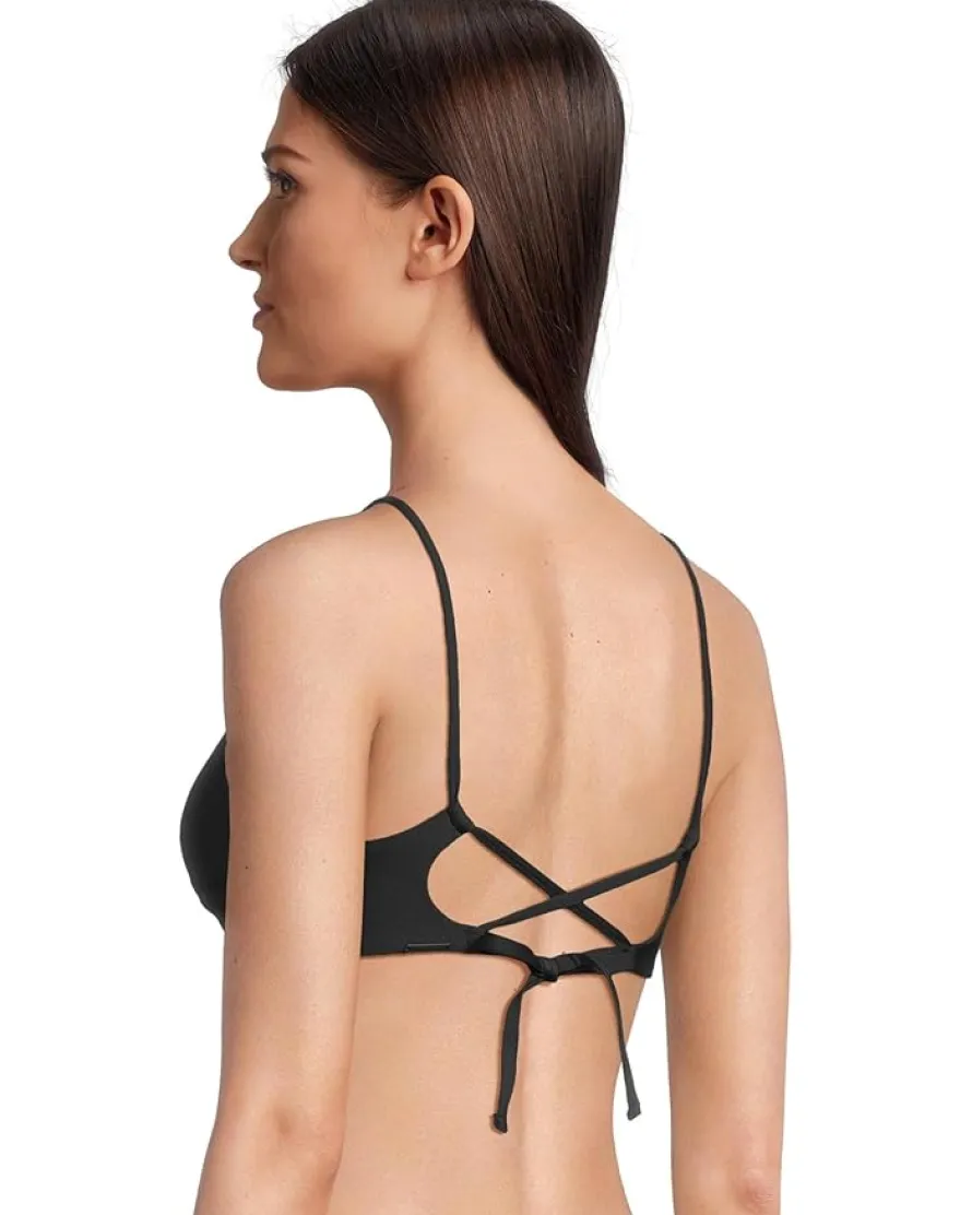 - The Sunsets lyla Bralette is a timeless staple for your swimwear collection. Designed with simplicity and versatility in mind, it offers a comfortable and flattering fit. Designed with a stylish crossover style and V-neckline, this bralette offers a flattering fit that will make you feel confident and beautiful. The interlacing string ties add a unique touch, while the removable cups and wire-free support provide all-day comfort.