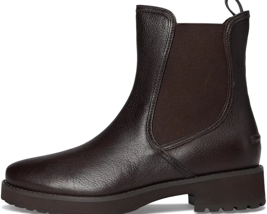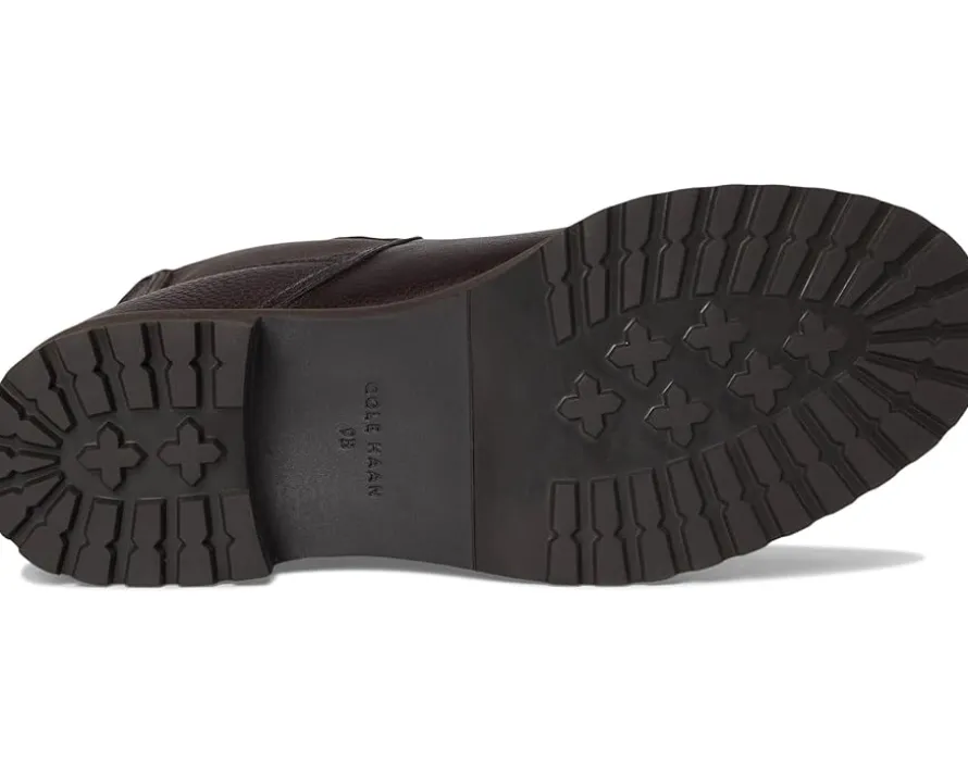 - The Cole Haan® Lyndon Waterproof Chelsea Booties present a classic silhouette with streamlined form and function for every occasion. Crafted in quality leather uppers with a waterproof coating and systematic layers of proprietary cushioning compounds, these softly pad each step. The full rubber outsole is for added grip and traction, while the block heel detail elevates the height. Plus, the ankle pull tab allows easy donning & doffing.