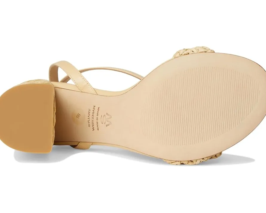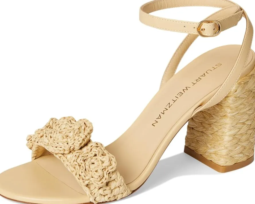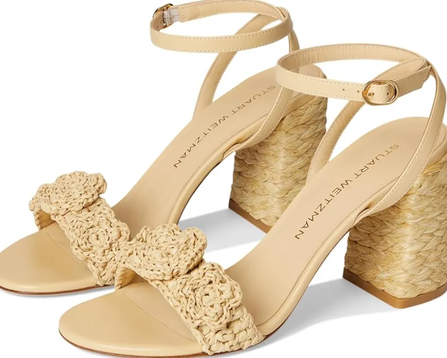- The Stuart Weitzman® Magnolia Block 85 is a high-top sandal with buckle adjustable ankle strap closure for a secure fit. With an open almond toe silhouette, this block heel silhouette features woven raffia upper and lacquered nappa construction.